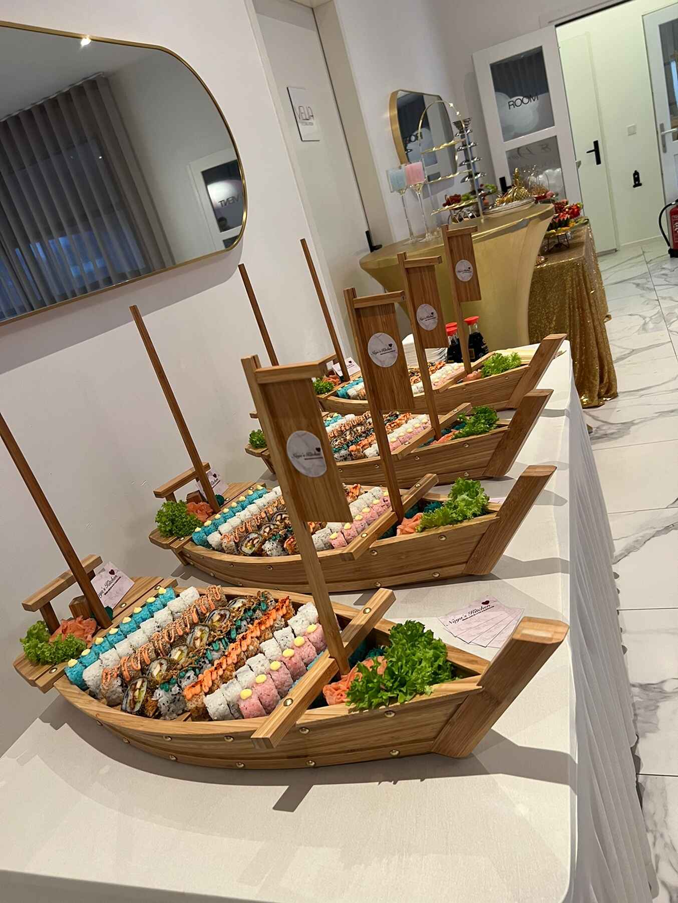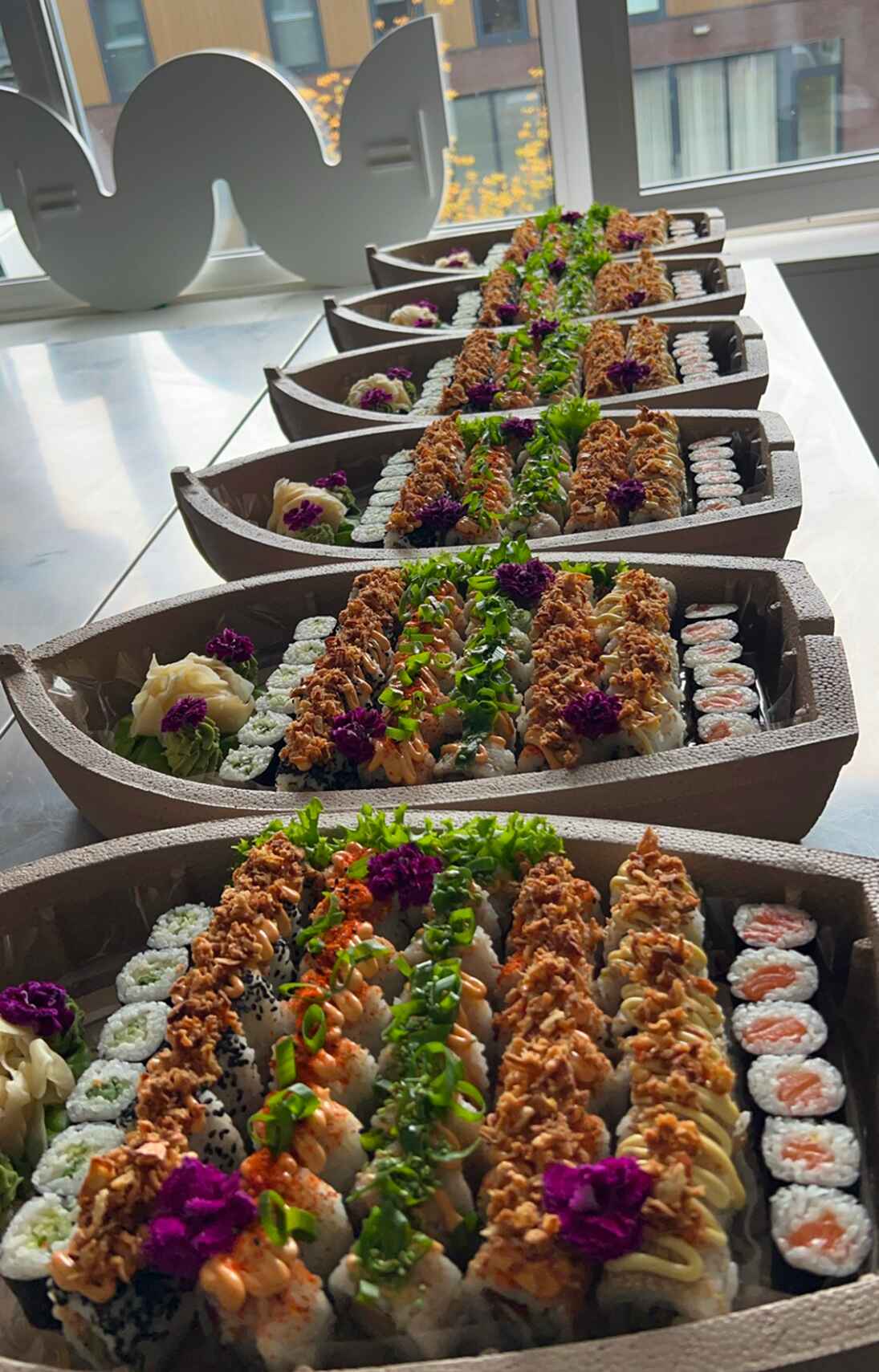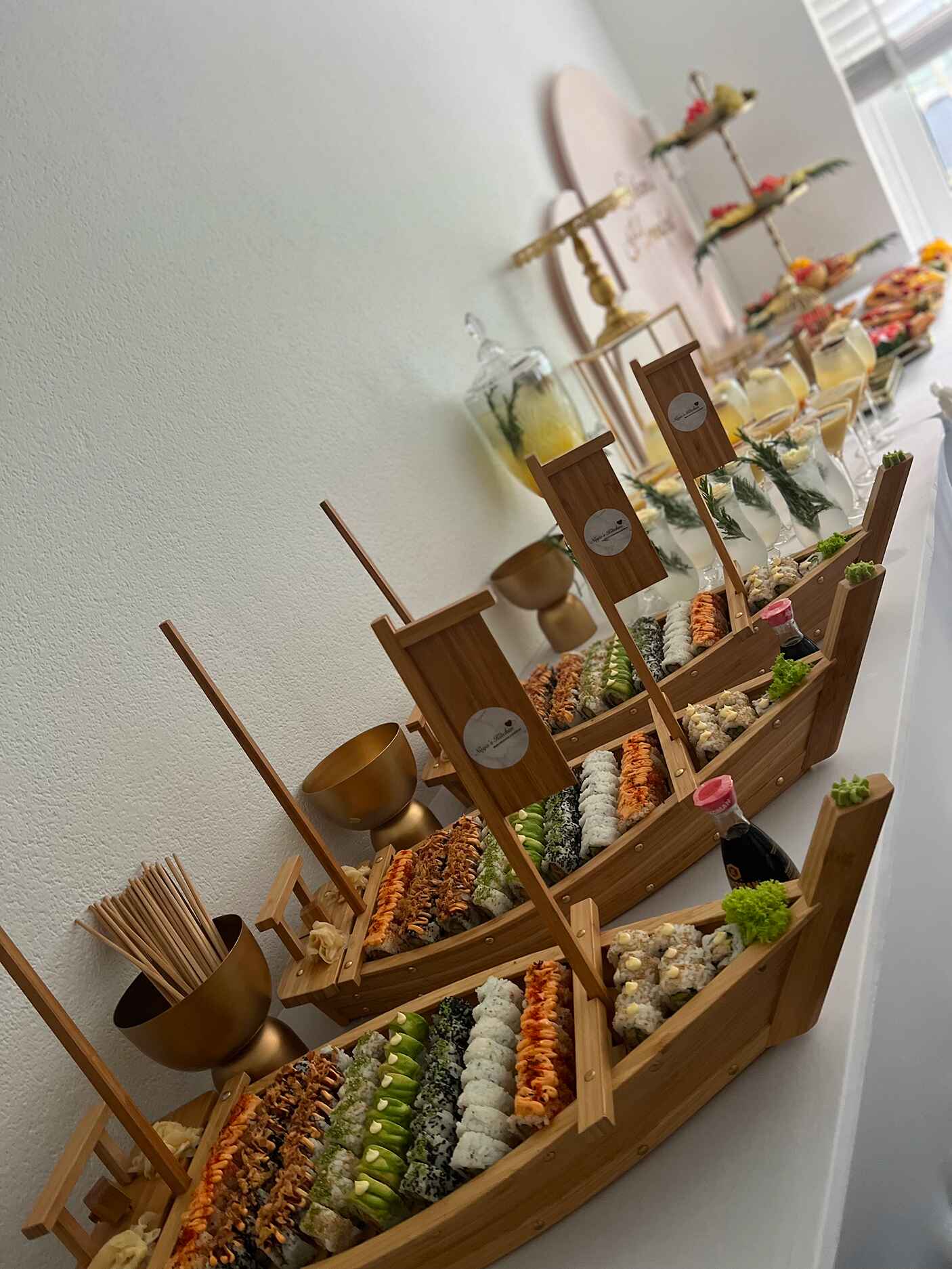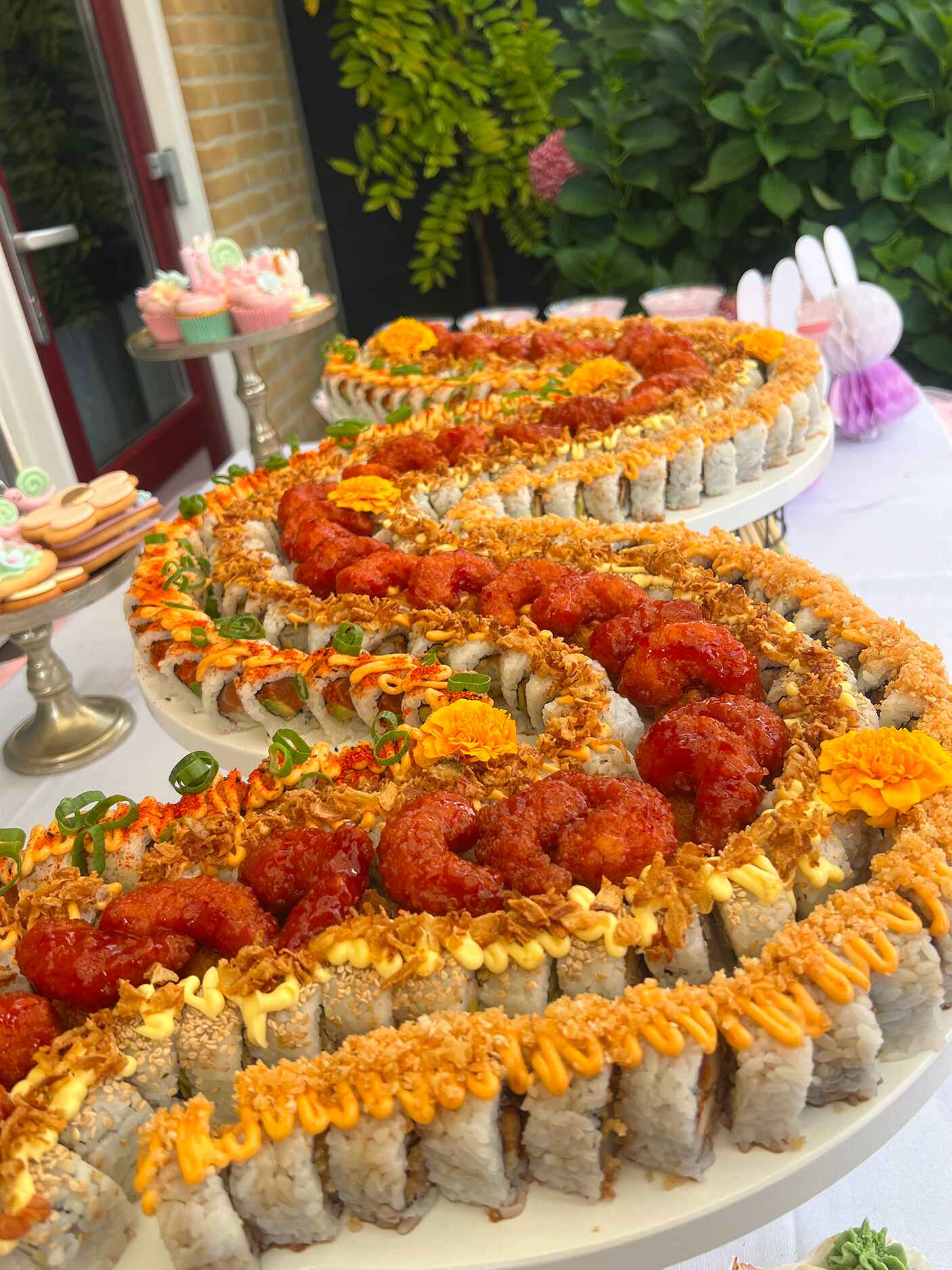 Elke gelegenheid is uniek — en daarom werk ik met flexibele prijzen die passen bij jouw ideeën en budget. Of je nu kiest voor een compleet buffet, thematafel of op maat gemaakte sushi-bootjes: je krijgt altijd een eerlijke prijs, zonder verrassingen achteraf. Tijdens een vrijblijvend gesprek bespreken we jouw wensen en maak ik een offerte op maat. Zo weet je precies waar je aan toe bent.