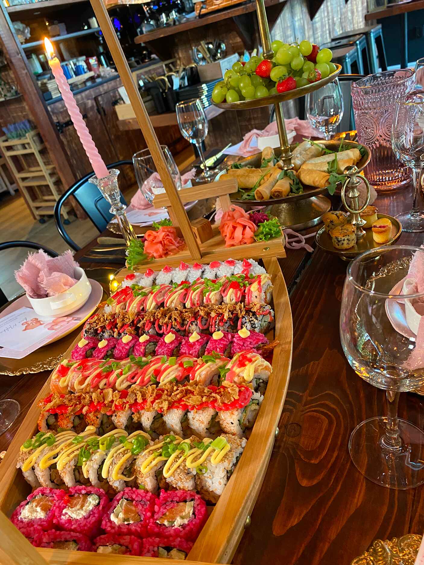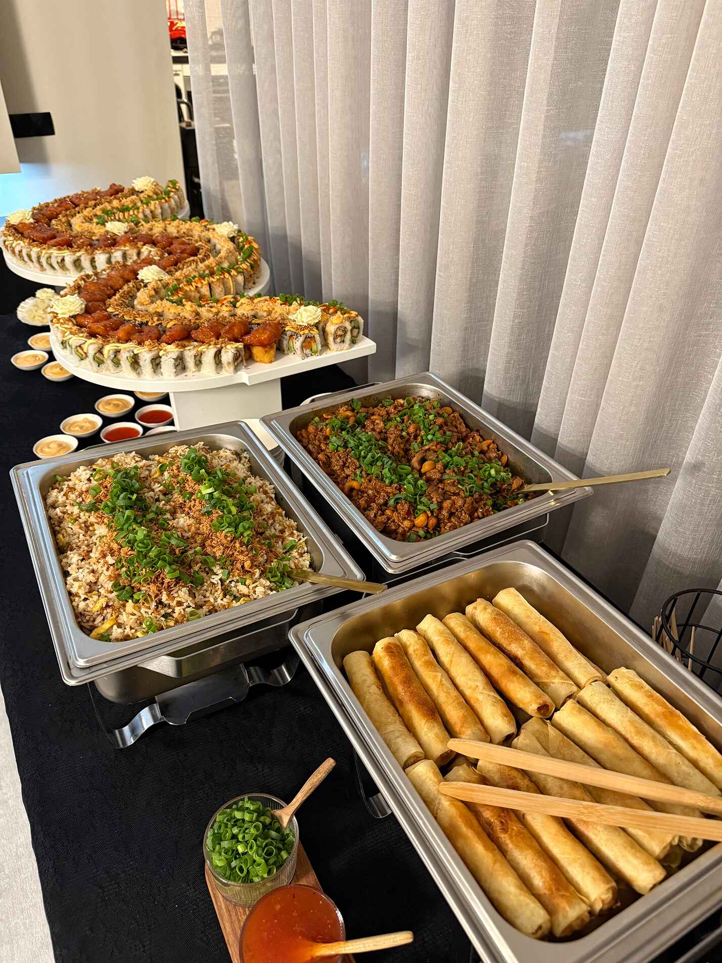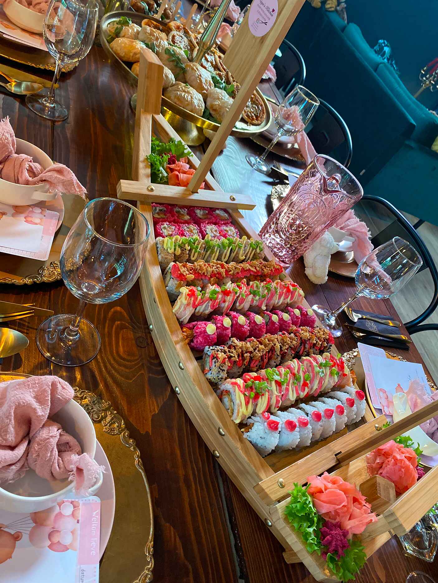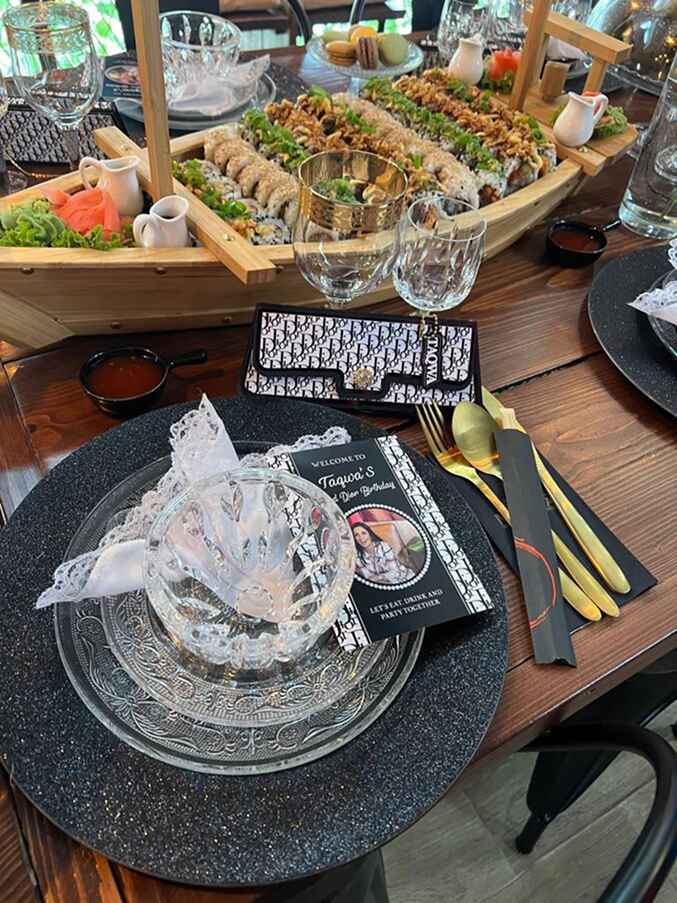 Elke gelegenheid is uniek — en daarom werk ik met flexibele prijzen die passen bij jouw ideeën en budget. Of je nu kiest voor een compleet buffet, thematafel of op maat gemaakte sushi-bootjes: je krijgt altijd een eerlijke prijs, zonder verrassingen achteraf. Tijdens een vrijblijvend gesprek bespreken we jouw wensen en maak ik een offerte op maat. Zo weet je precies waar je aan toe bent.
